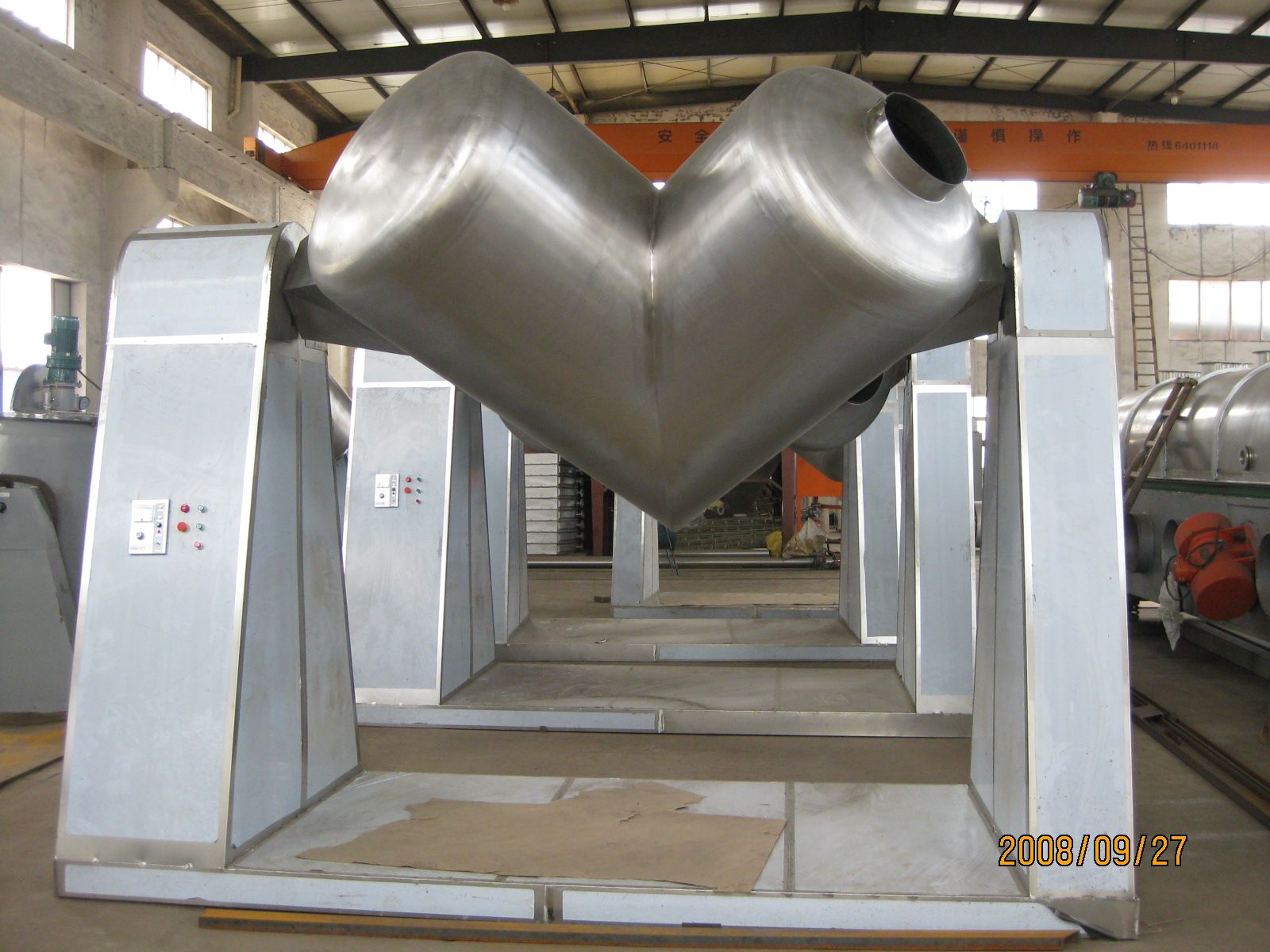 V型混料机适用于物料流动性良好、物性差异小的粉粒体的混合,以及混合度要求不高而又要求混合时间短的物料混合,由于V型混料容器内的物料流动平稳,不会破坏物料原形,因此V型混料机也适用于易破碎、易磨损的粒状物料的混合,或较细的粉粒、块状、含有水份的物料混合之用,广泛应用于制药,食品,磁性材料,粉末冶金,化工,电子,陶瓷等行业,是一种合适的混合设备。