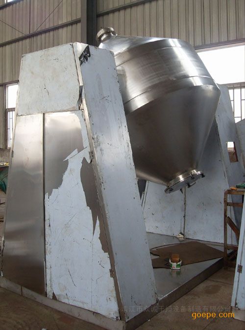 SZG系列双锥回转真空干燥机为双锥形的回转罐体,罐体在真空状态下,向夹套内通入导热油或热水进行加热,热量通过罐体内壁与湿物料接触。湿物料吸热后蒸发的水汽或其他气体,通过真空泵经真空排气管被抽走。由于罐体内处于真空状态,且罐体的回转使物料不断的上下,内外翻动,故加快了物料的干燥速度,增加干燥速率,均匀干燥的目的。